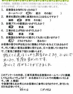 私ども職人のあいさつ・笑顔の事ほめて頂けた事とても嬉しく思います。